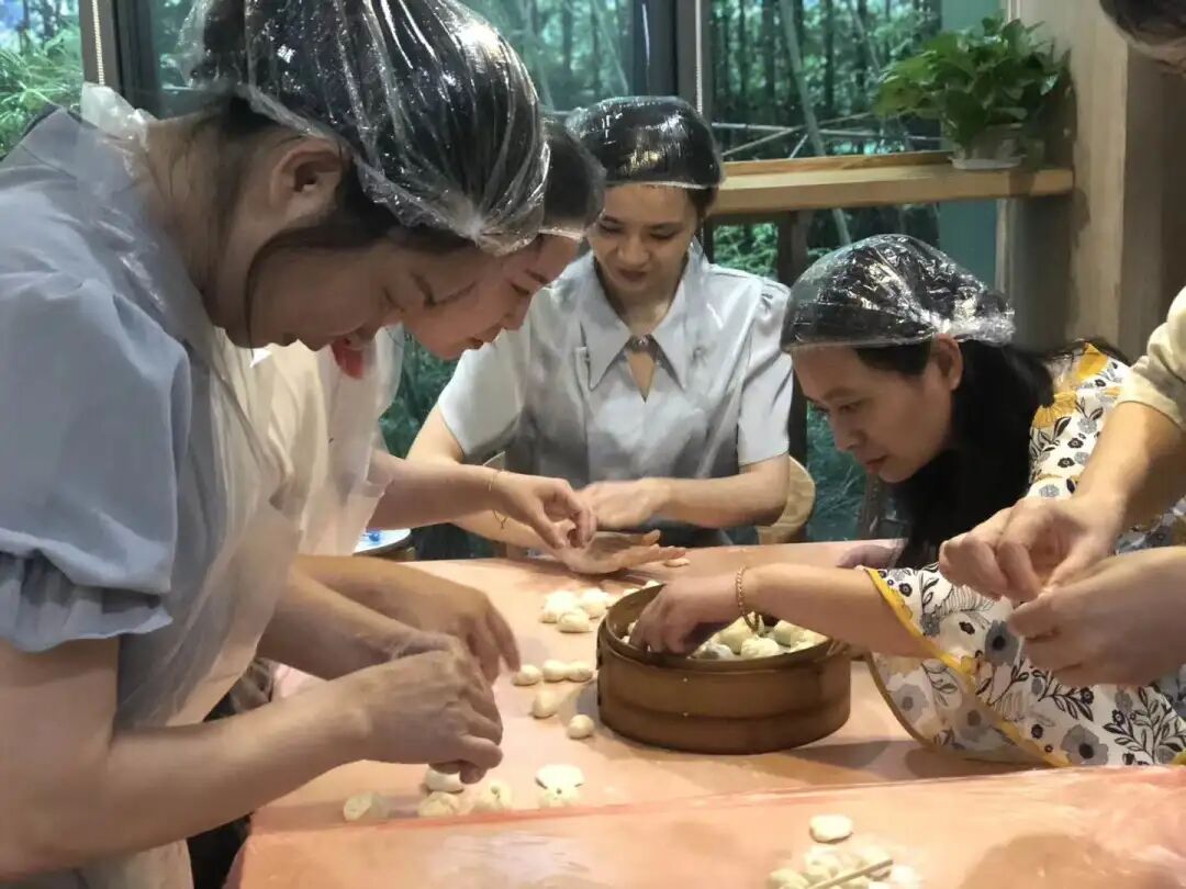南翔小笼包作为上海传统名点,深受大家喜爱。那么,它的制作过程是怎样的呢?在专业老师的指导下,妇女干部们体验了小笼包制作。别看一个个精致的小笼包在老师手中不一会儿就成形,自己动手,还真挺难的。大家相互讨论研究,不断改正手势动作,一点点进步。虽然,小笼包不及老师制作的精致,但通过自身努力来完成,吃起来也别有一番风味!