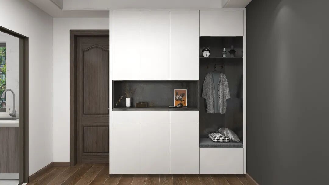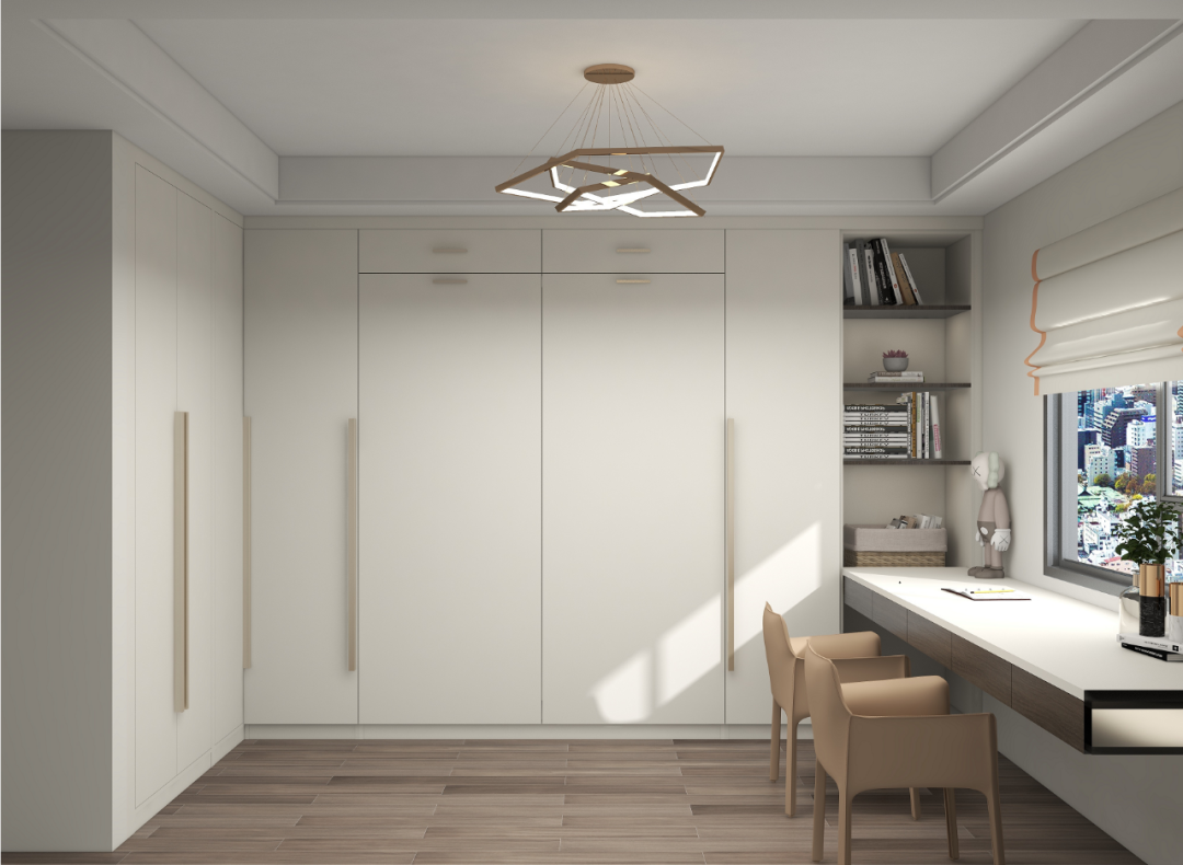 北美红橡木搭配莫兰迪色系,让家居环境的视觉达到完美平衡