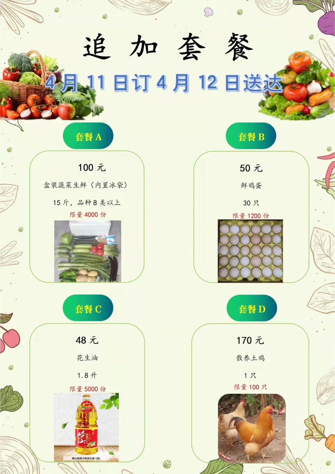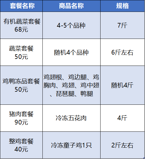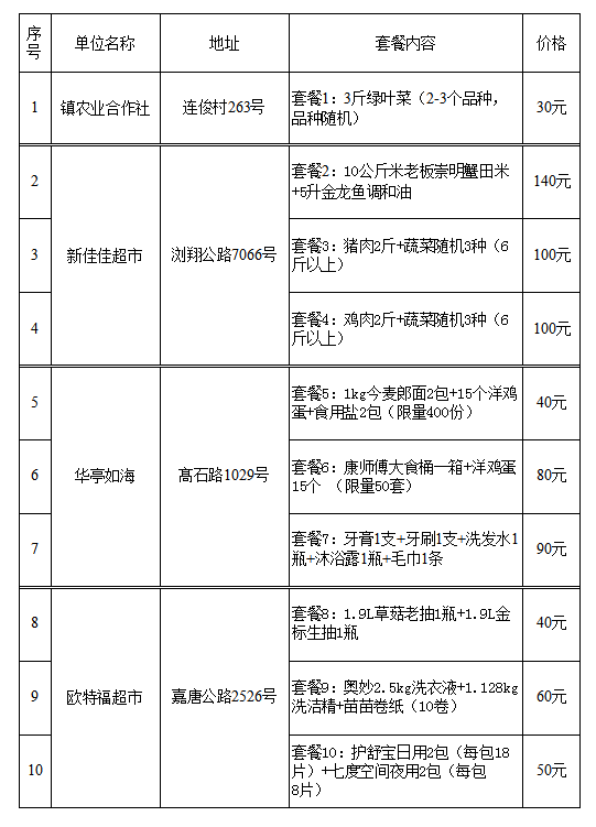 注:因为目前疫情运输限制,只供应华亭区域。套餐货品会根据实际情况及时予以调整。