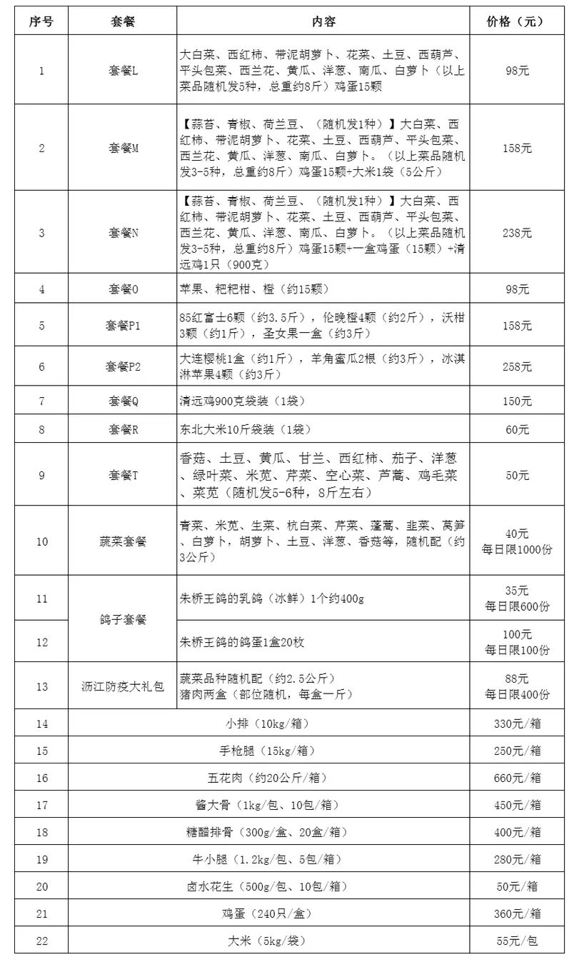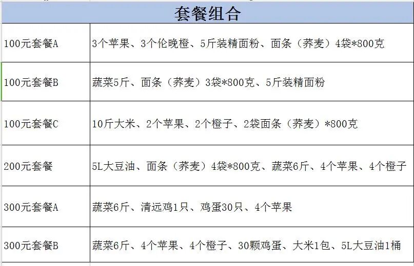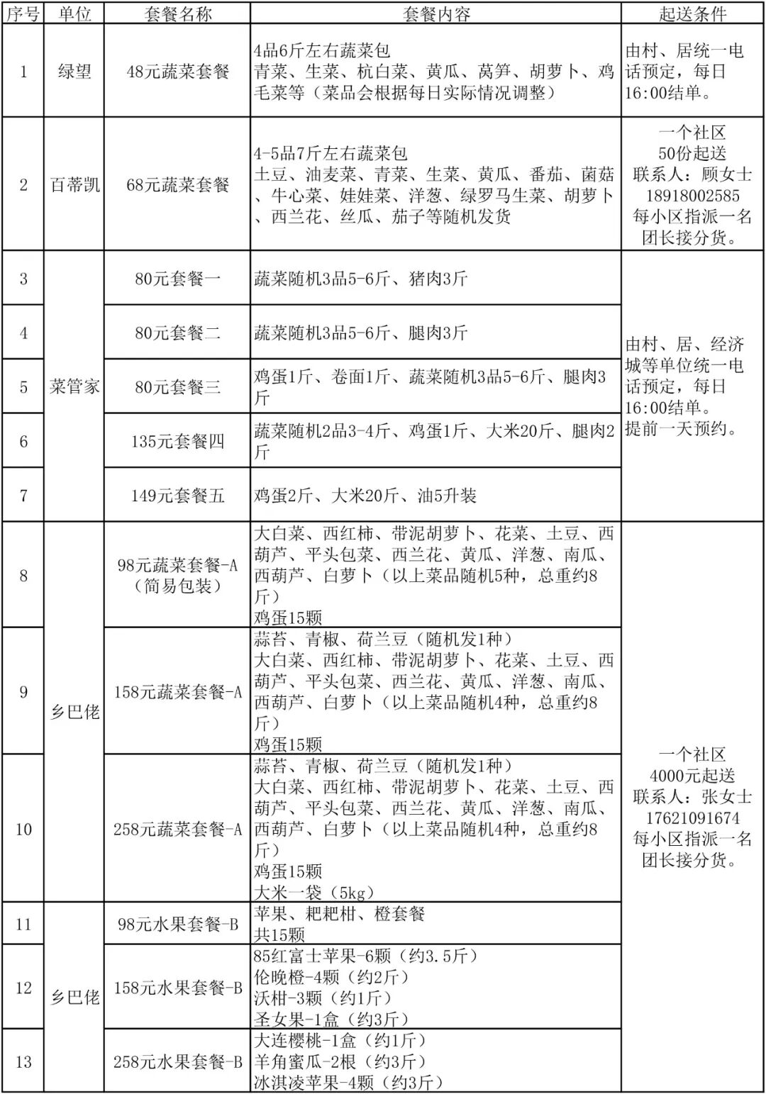 1、保供套餐由村、居统一订购,每家限1份,满20份起送;