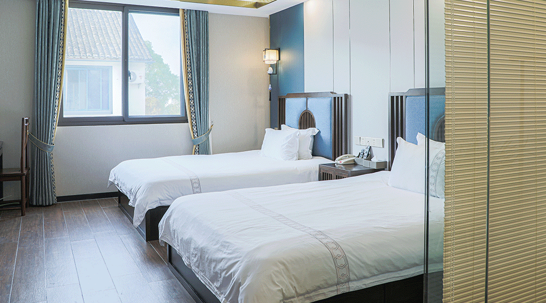 杏雨梨雲精品民宿依水而建,抚柳相依,共分为两层,一共30间新中式的客房,其中复式套房2间,套房7间,17间大床房,4间高级标间。虽然整体布局为新中式风格,但每间房间都有略微不同之处,各具特色。
