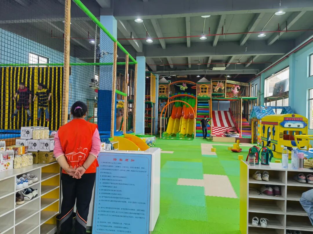 愚农儿童游乐场配备室内专业儿童娱乐设施,包含双层软体乐园,大型软体海绵池,双层儿童滑梯,气垫攀岩等诸多供儿童娱乐的连体乐园设施。增设安全保卫员实时管理指导儿童进行安全的娱乐活动,释放孩子童真天性。