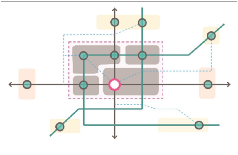 (2)新城与中心城:提供多模式网络化轨道主导的高效服务