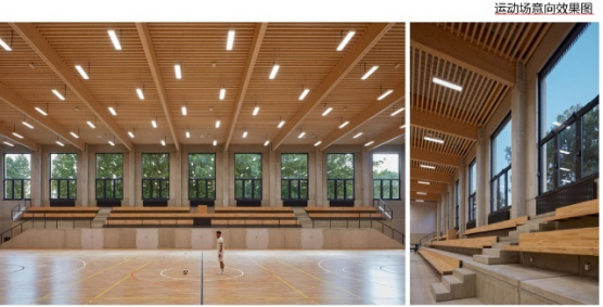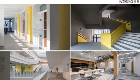 架空连廊贯穿整体设计之中,从中间教学楼向外发散到西侧的食堂和学生宿舍,向北到行政楼、游泳馆、风雨操场和报告厅,我各个不同功能的建筑体联系紧密,多样、复合、交融,用来形容我的校内外空间结构是再准确不过了。满足学生不同的个性需要,是我的努力方向,也是校舍设计的根本理念。