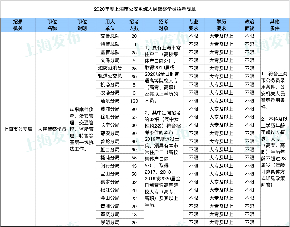 政策咨询详见《2020年度上海市公安系统人民警察学员招考政策问答》。可点击“阅读原文”了解!