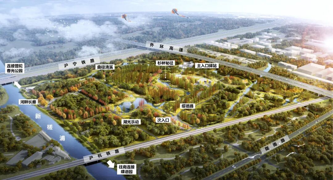 另外,公园建设中还将修缮原有的外环绿道,新增慢行园路环通游线及外环绿道标识体系,建成步行道与自行车道兼备、连续贯通的绿道。同时,因公园地处外环嘉定段与普陀段交接位置,未来拟将通过沪宁铁路绿道断点贯通,实现嘉定绥德公园与普陀春光公园的串联,并在嘉定区其余6处及各区绿道断点贯通后,真正实现“环上自由行”。