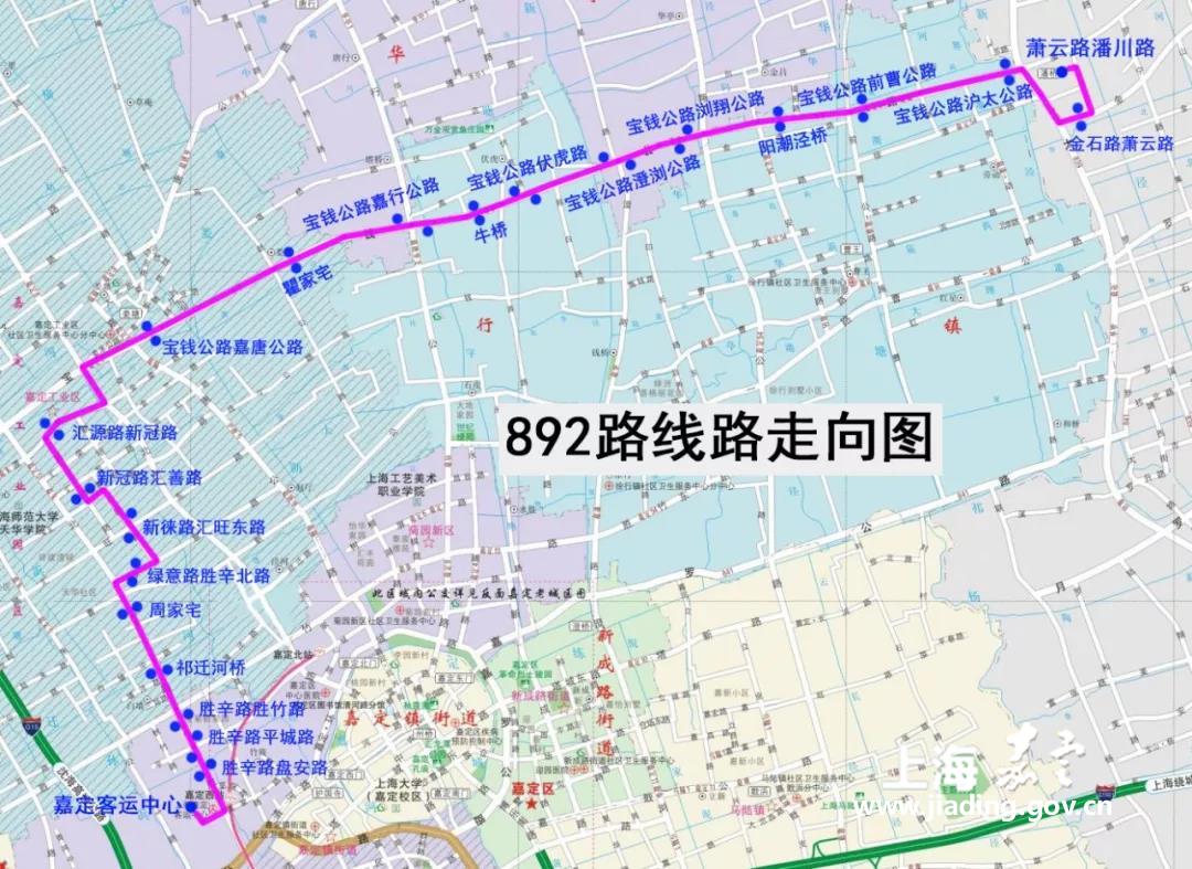 自黄渡汽车站起,经绿苑路、曹安公路、嘉松北路、翔方公路、园高路、金昌西路、嘉宝路、兴亭路、荣安路、众百南路、众百路、宝安公路、嘉松北路、伊宁路至上海赛车场止。