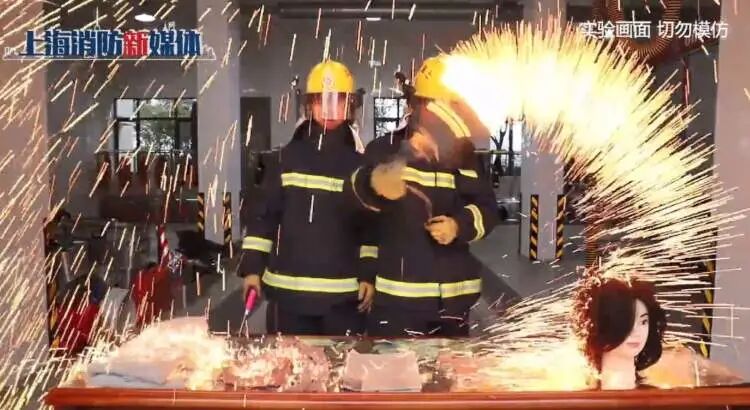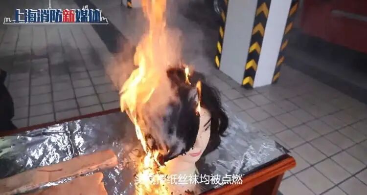 奉贤区消防救援支队专门为此做过一个实验,用假人模拟人的毛发,用丝袜、毛衣模拟人的衣物,用报纸模拟可燃物。