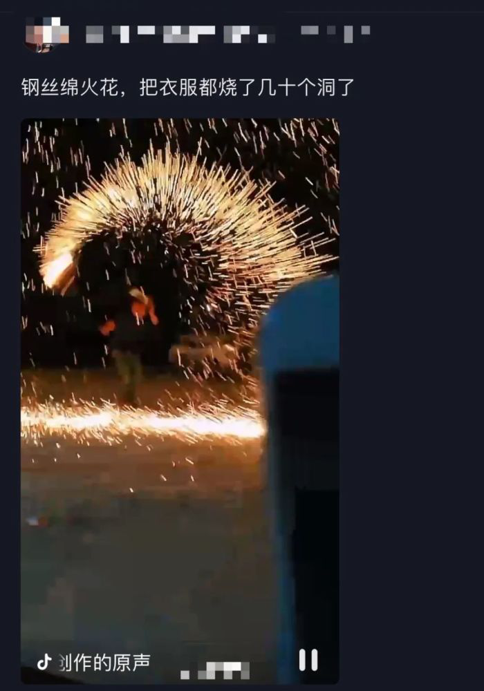 在抖音短视频平台上,这名男子玩的“钢丝棉烟火”因燃烧时能营造出焰火般的光圈和光束,受到不少年轻人追捧。