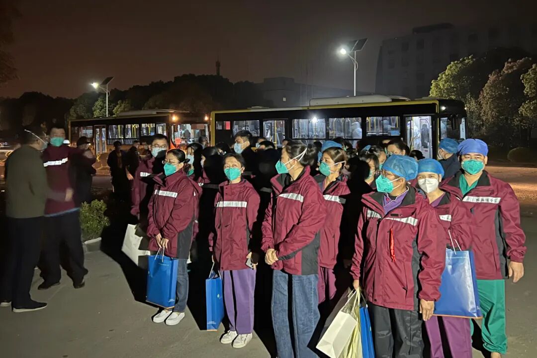 晚上11点半,海南医疗队坐着大巴抵达方舱医院。接下来,这275名医护人员将全面接管方舱医院。在病人还没进舱前,大家熟悉环境、分配区域、认领任务。