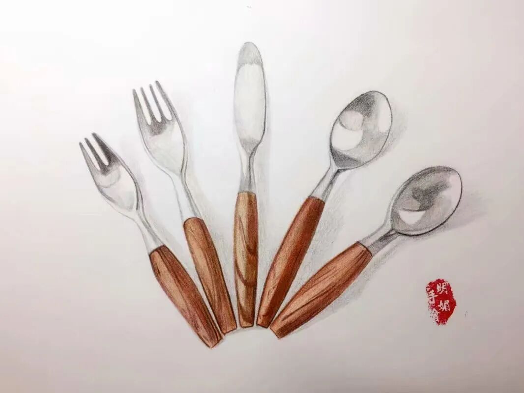 新裕村的绘画达人李寅旻,用画笔绘出了“爱生活 爱健康”公勺公筷系列作品