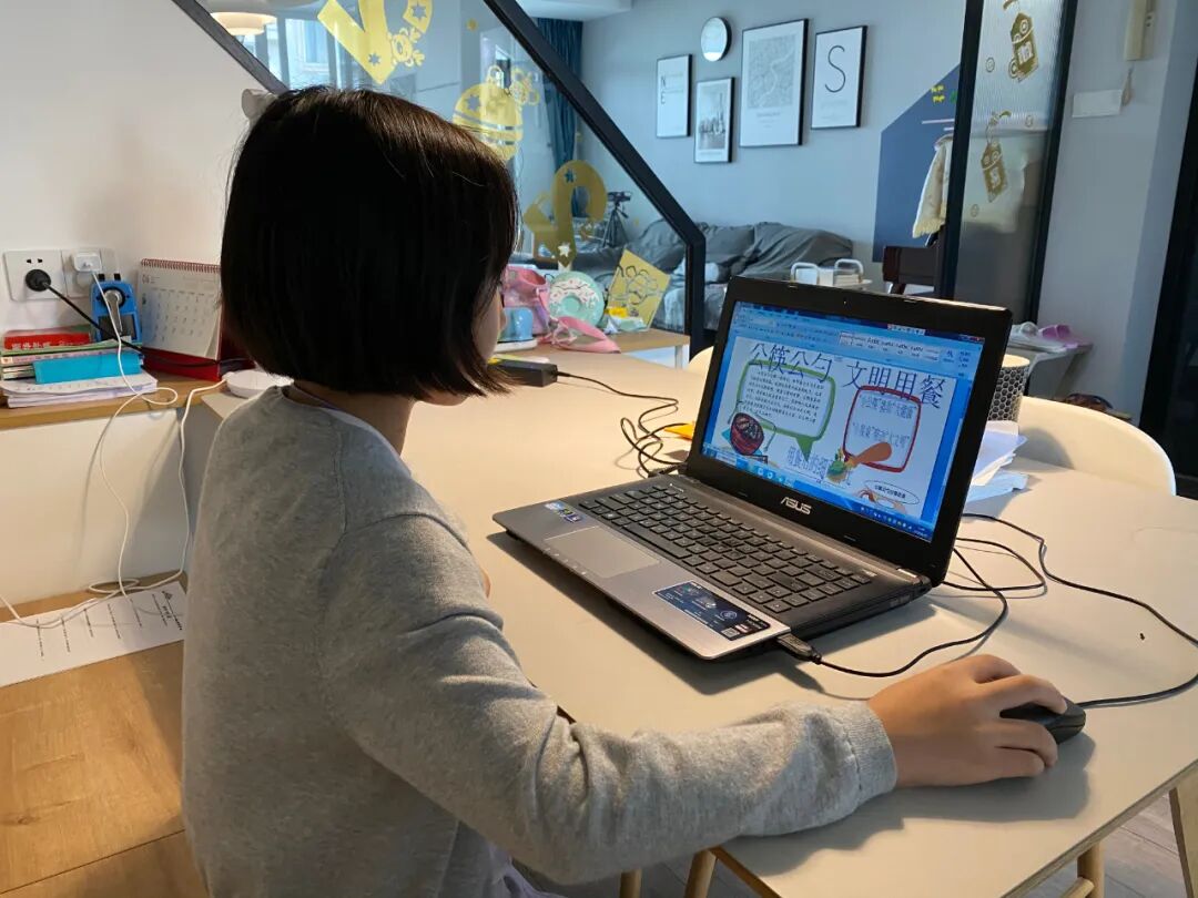通过涂绘,同学们不仅喜欢上“公筷公勺”的卡通形象,同时对“公筷公勺”使用意义有了更进一步的认识与了解。