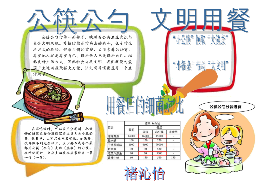 华丰社区的褚沁怡小朋友电脑制作“公勺公筷 文明用餐”公益小报