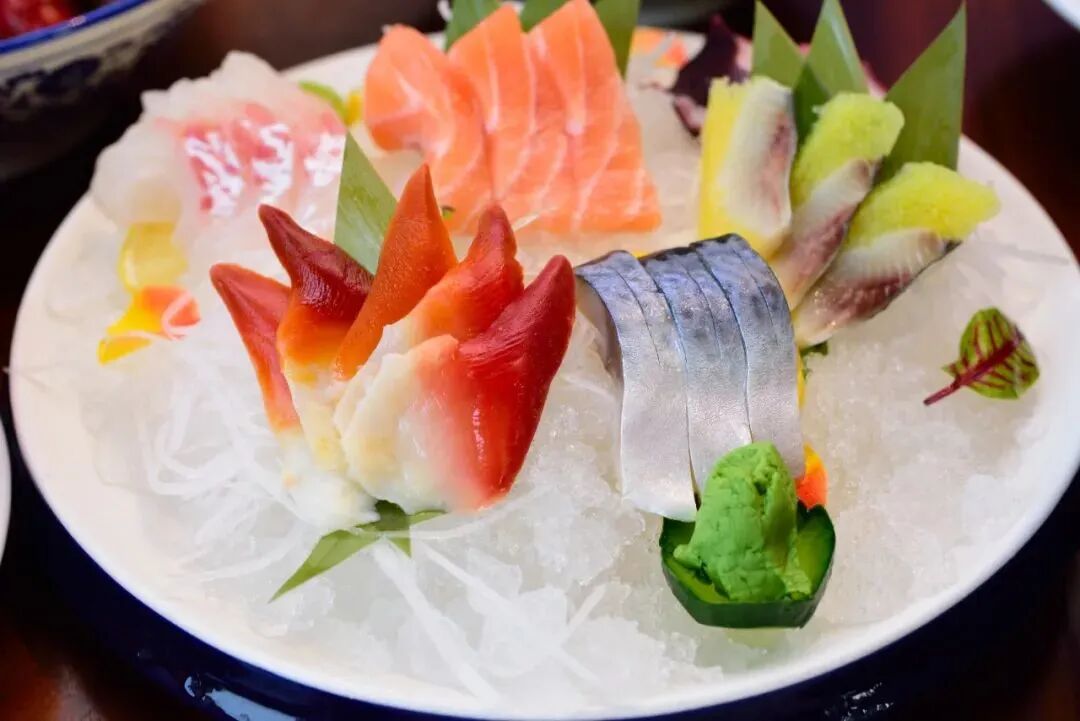► 三文鱼,金枪鱼,西鲮鱼籽,醋青花,章鱼足,日式蟹柳,北极贝等