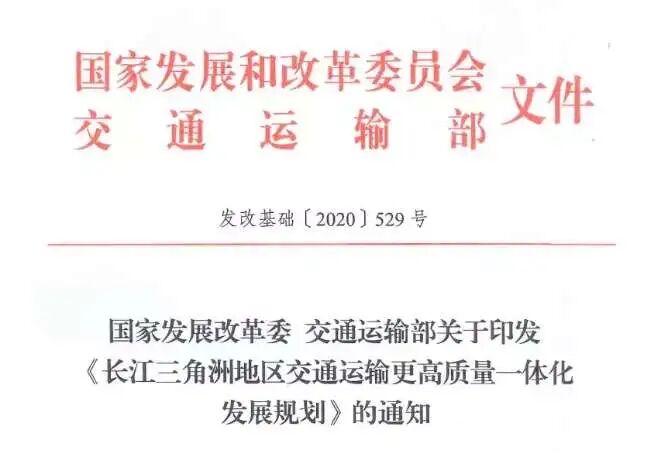 近日,国家发改委、交通运输部发布 《长江三角洲地区交通运输更高质量 一体化发展规划》