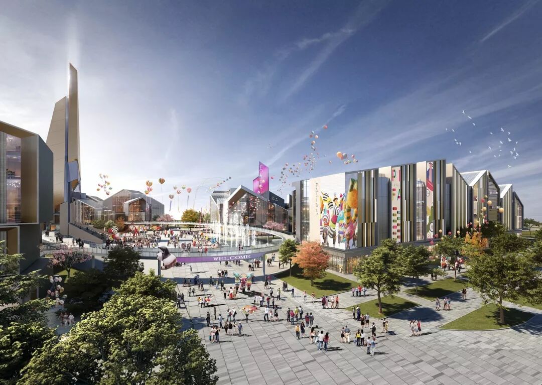 其中,一座阿尔卑斯度假小镇,将汇聚室内冰雪世界、水乐园、欧洲小镇商业街以及教育、体育等多项核心功能及配套资源。
