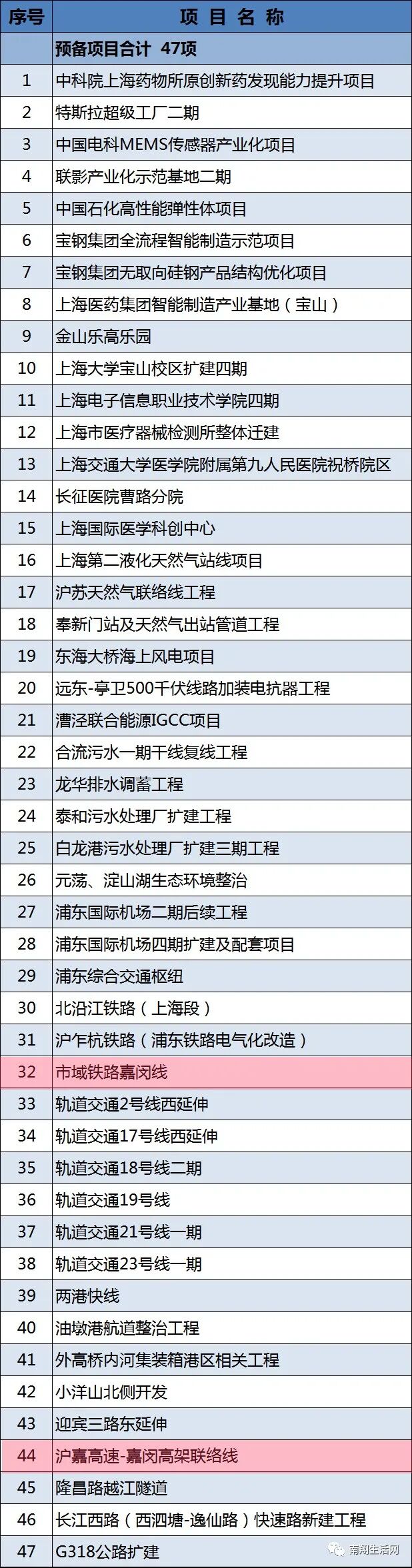 行文很严谨,把目前前期手续还没有齐全的项目都列为了预备项目,把已经准备好的,就列为“计划新开项目”,例如轨道交通崇明线。