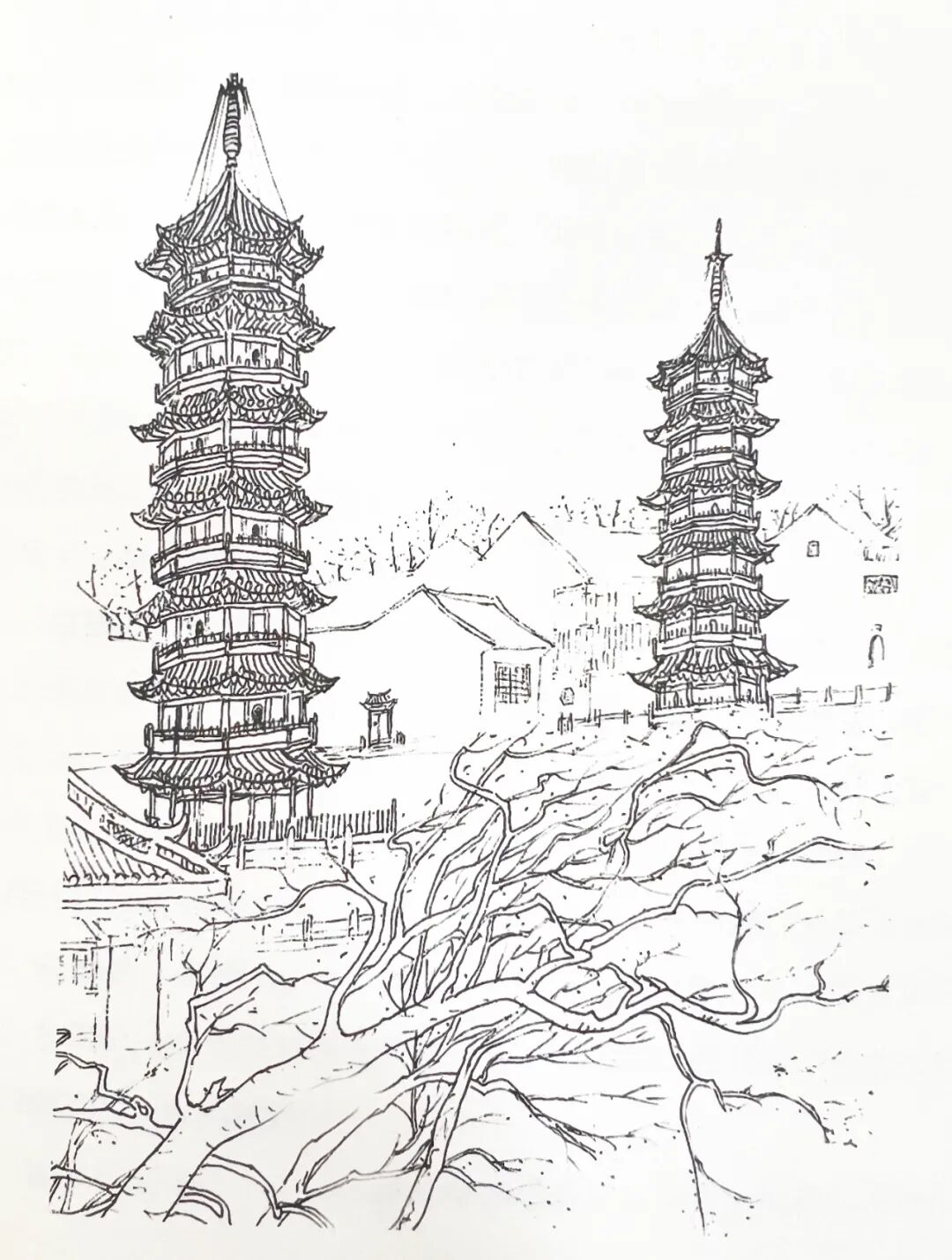 后来云翔寺在成火中被毁,只有一对砖塔赫然耸立,见证着白鹤南翔寺的传说。