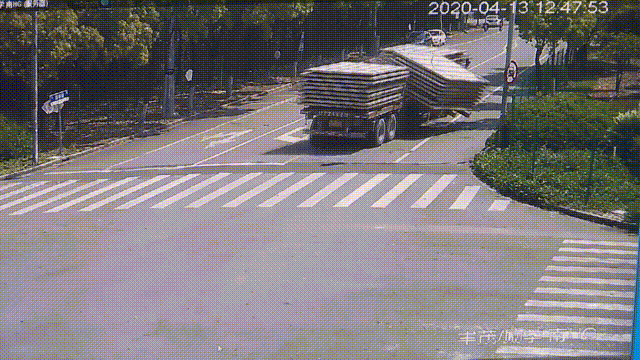 一辆货车在转弯时发生交通事故,