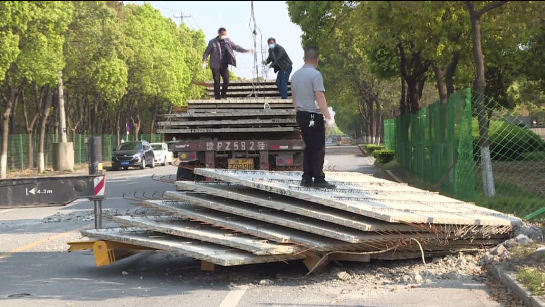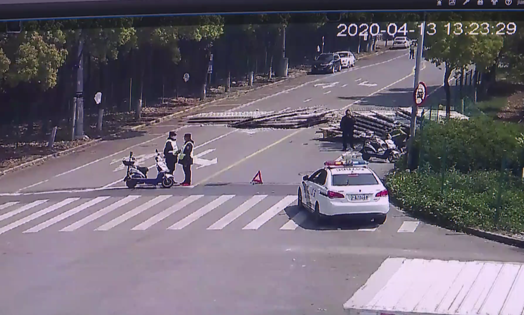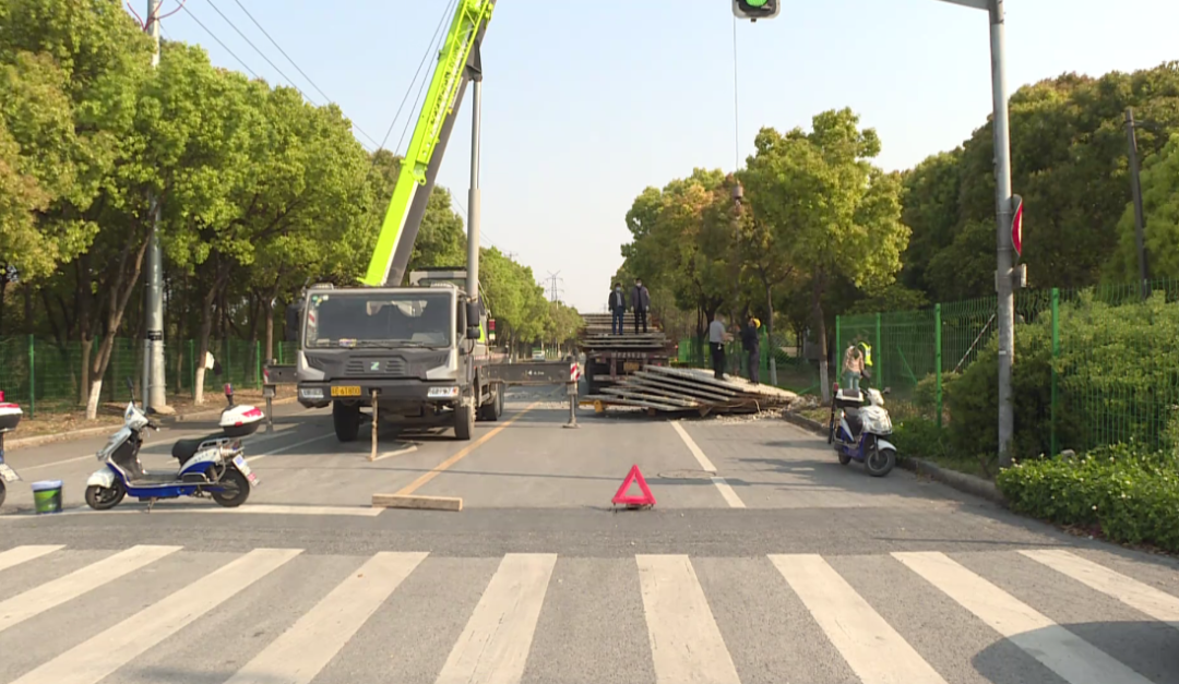 惊险!嘉定这条路翻倒了一地钢筋水泥?后车司机一习惯幸免于难…