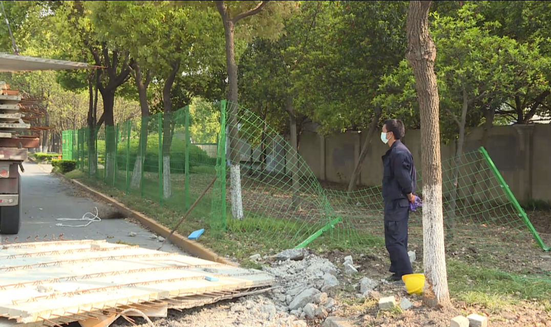 路旁的绿化护栏部分也已经被压断。