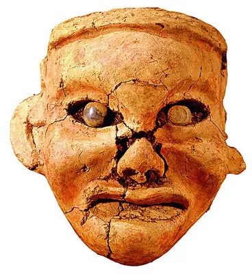 红山女神,是指红山文化考古区域出土的一尊相当于真人大小的陶制女人头像。这尊头像采用高度写实和艺术夸张手法,既强调外形轮廓的秀美柔和,更追求内在神态的情感流露。尤其是眼球的处理——以玉为睛,深深嵌入斜立的大眼眶中心,使炯炯有光的眼神一下子迸发出来——真是神来之笔。