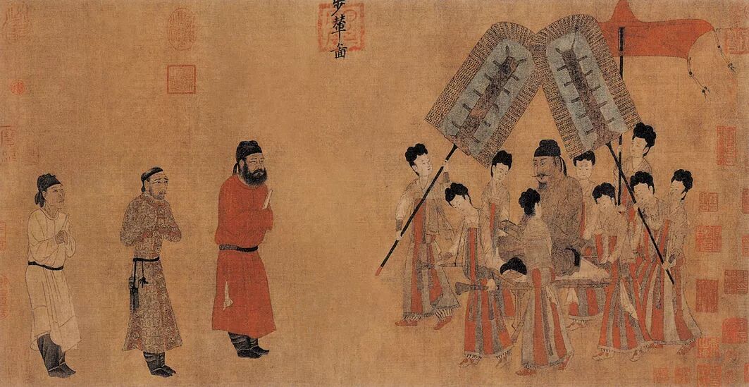 《步辇图》是唐代画家阎立本的作品,内容反映的是吐蕃(今西藏)王松赞干布迎娶文成公主入藏的事。现存画作被认为是宋朝摹本,存于北京故宫博物院。绢本,设色,纵38.5厘米,横129.6厘米。被称为“中国十大传世名画”之一。