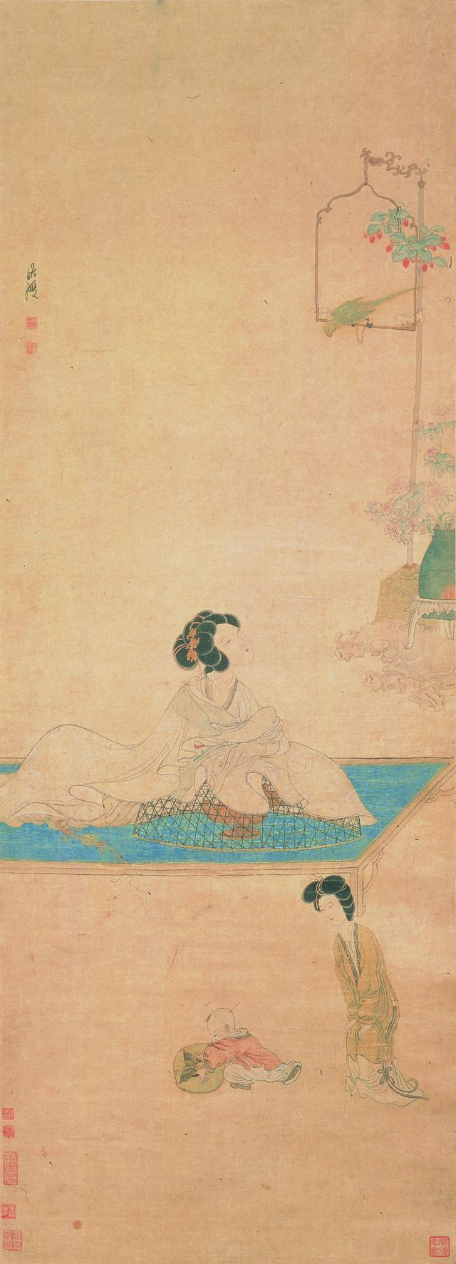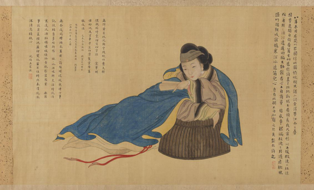 ▲明《斜倚薰笼图》 陈洪绶绢本设色