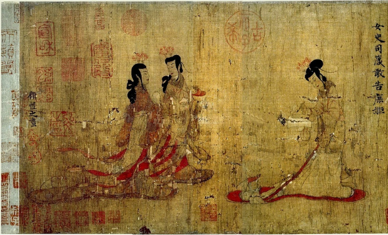 她的故事被东晋顾恺之画入《女史箴图》千古流传。原作已佚,现存有唐代摹本,原有12段,因年代久远,现存仅剩9段,为绢本设色,现收藏于大英博物馆。
