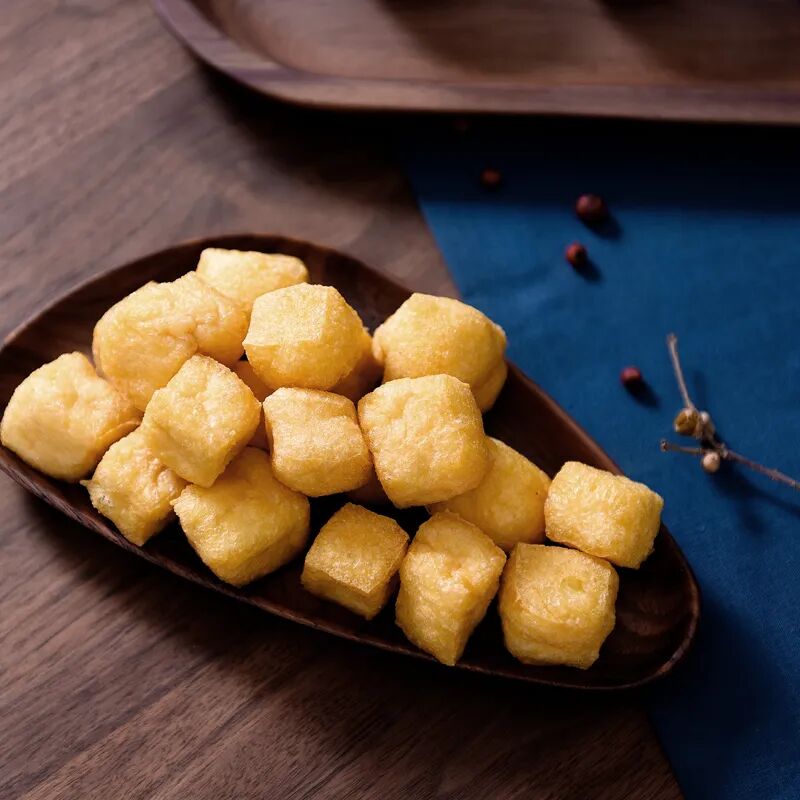 碧蓝天空下的“奇峰”,仔细一看,却原来都是由豆制品堆砌而成。褐色的山石是香干,白色的山峰是百叶结,远处的崇山峻岭则是厚千张一张一张铺就。