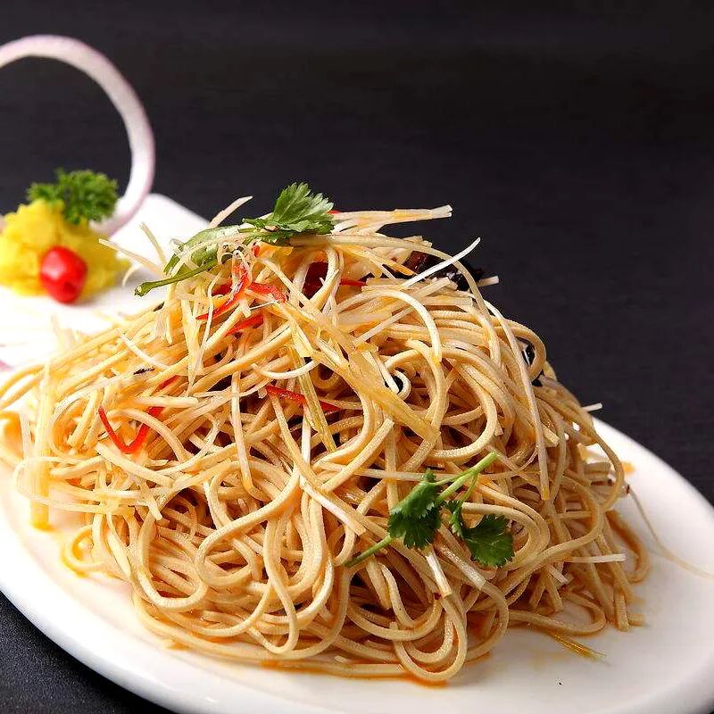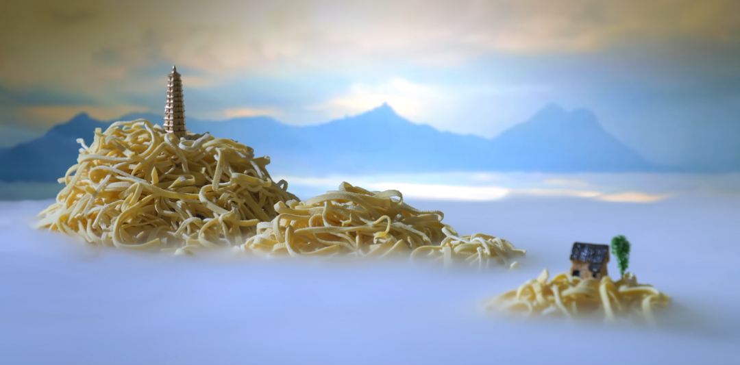 整片的千张做成一望无际的大漠,连绵起伏,腐竹被做成了河边的黄色树林,每一种不同形态、不同质地的豆制品,都在大自然中找到了展示自己的机会。