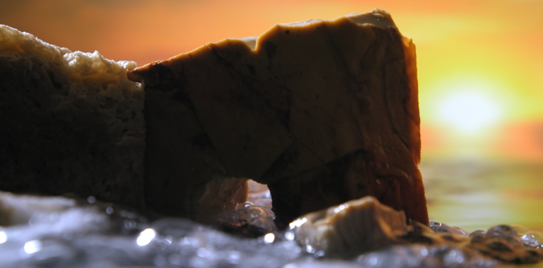 连河边巨大的礁石,也是由香糕作出的造型,河水拍打,激起层层波浪,惟妙惟肖。