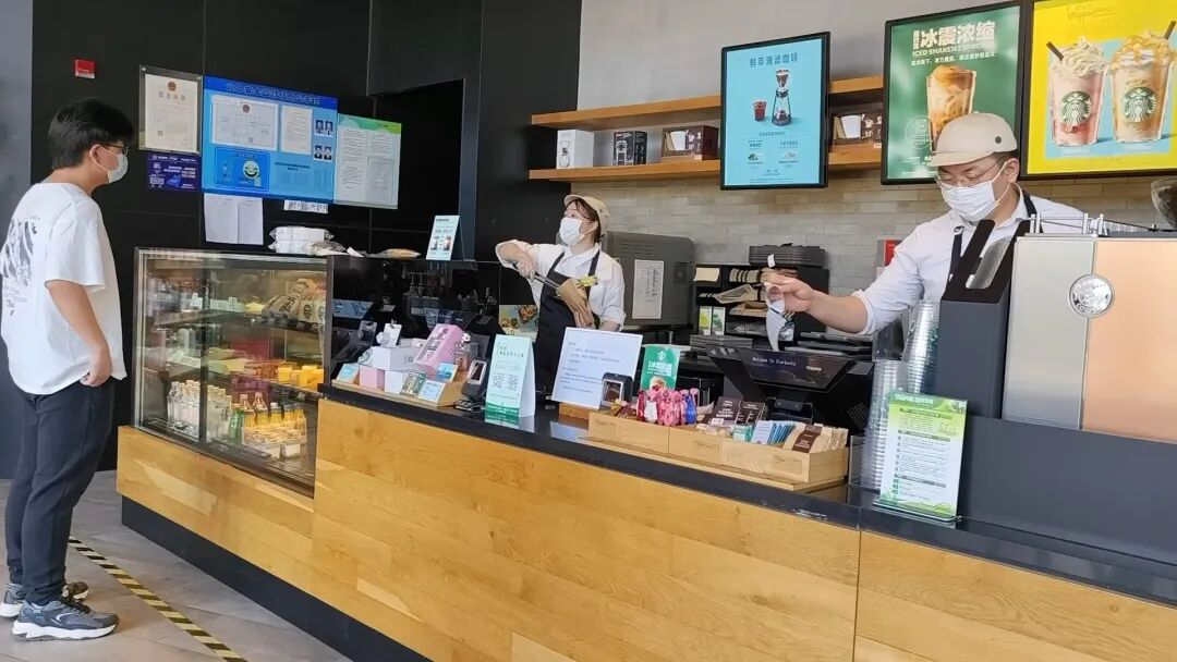 今日一大早,南翔太茂景观位的星巴克迎来了首批客人。