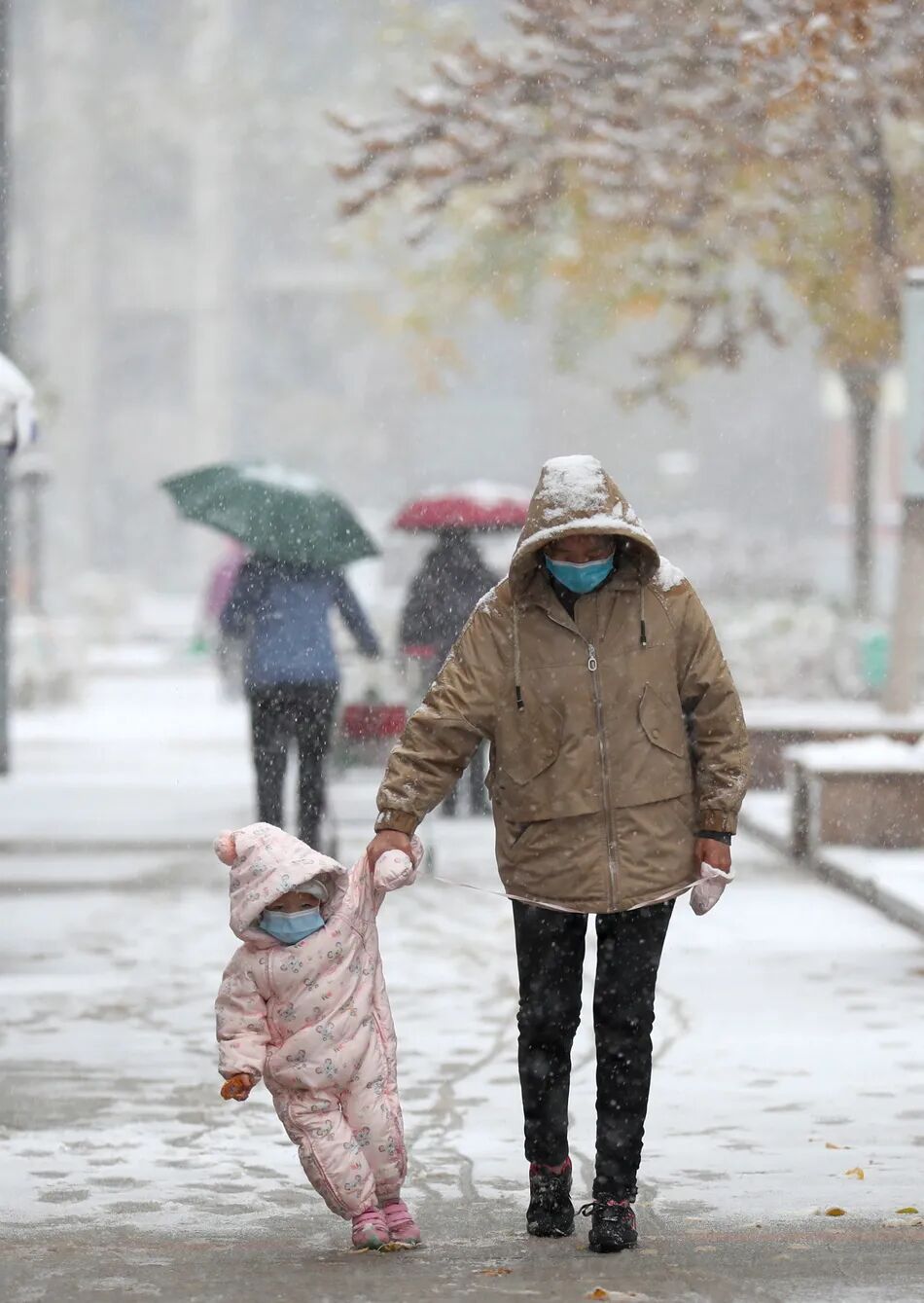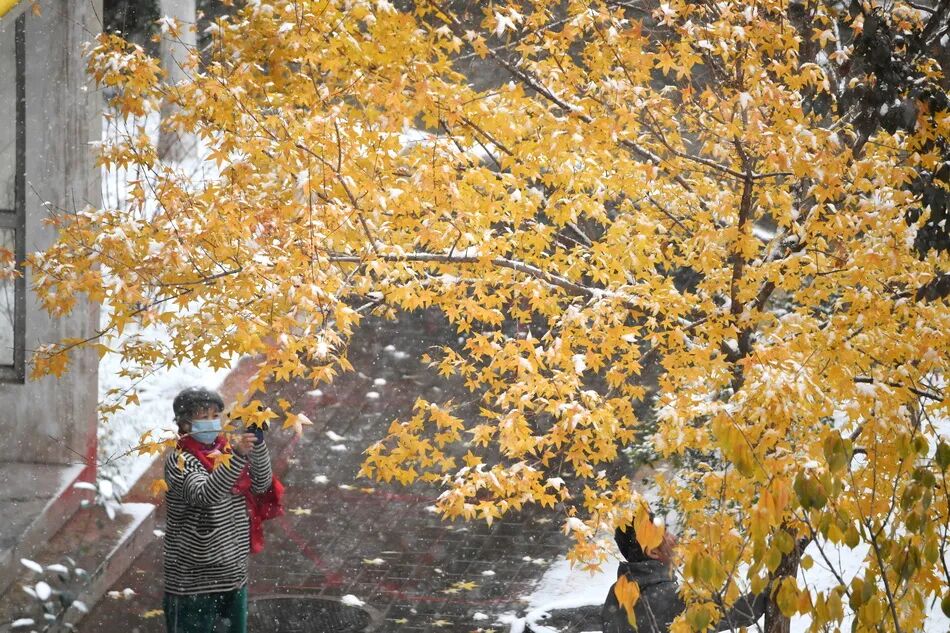 11月6日,兰州迎来降雪,市民拍摄雪景