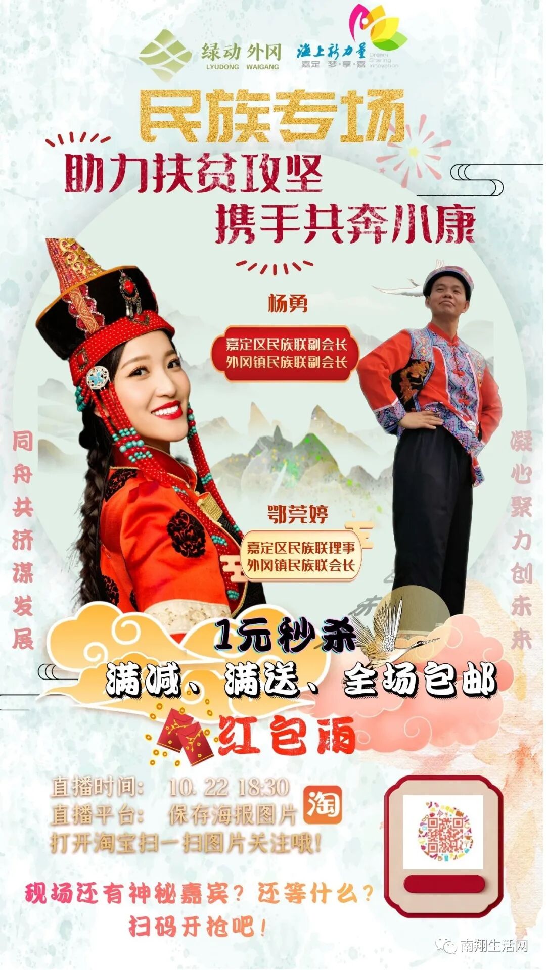 嘉定区民族联理事、外冈镇民族联会长鄂莞婷携手嘉定区民族联副会长、外冈镇民族联副会长杨勇给大家带来重磅云品助力。扶贫助力我们是认真的,向最后最后一公里开进。现场还有神秘嘉宾,给大家送上秒杀,红包!惊喜不断!