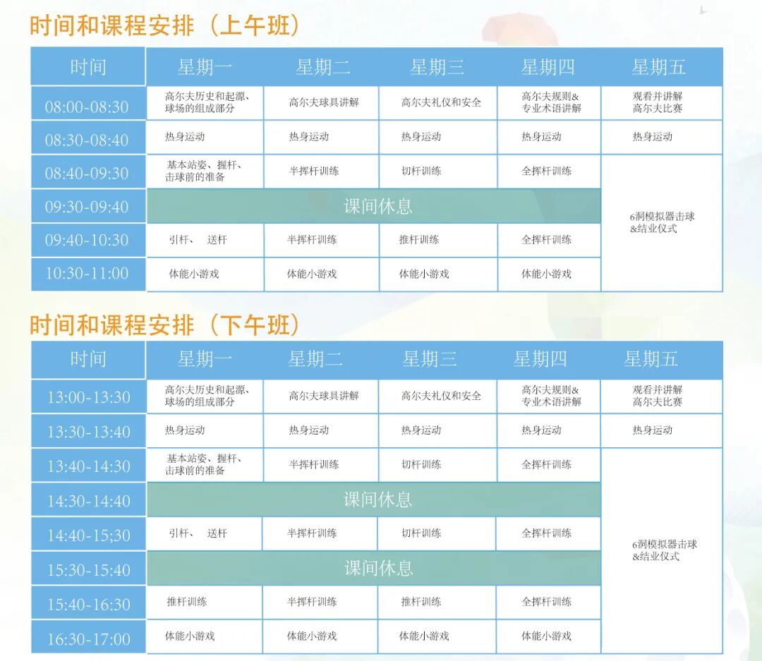 (费用包含:高尔夫教学课程、击球练习、高尔夫球杆使用等)