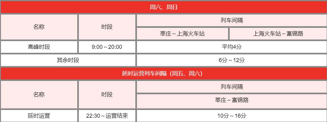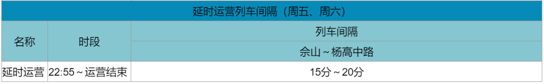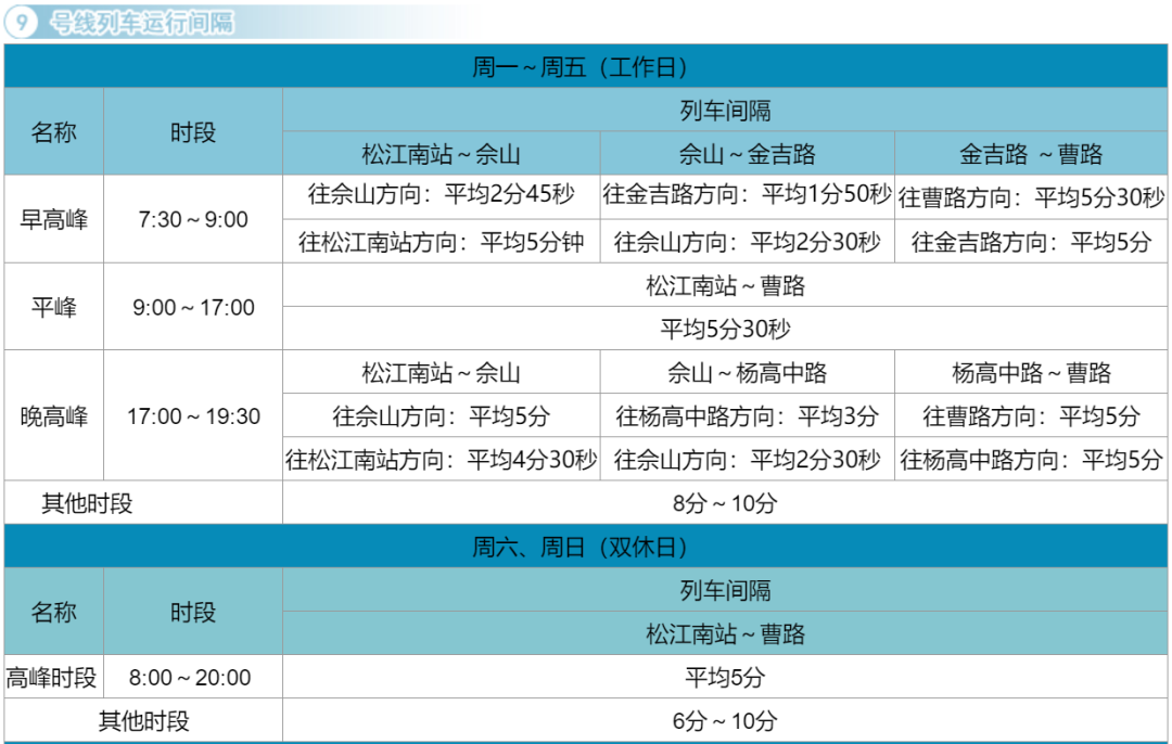 1. 9号线佘山站至杨高中路站区段每周五、周六延长运营时间。