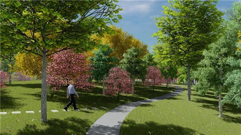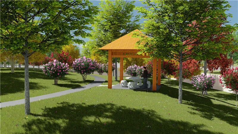 据悉,绿地内将设健身步道,种植香樟、水杉、桂花、银杏、杜鹃、樱花等多个品种的乔木,以及紫薇、茶梅、红花檵木、绣线菊等灌木,再配以红花醡浆草、二月兰等地被植物,让整体环境层次分明,且四季有景。