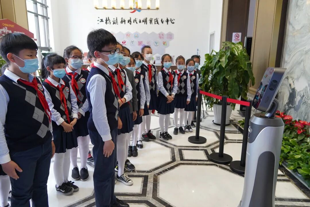 场馆内的科技元素无处不在。机器人“江小桥”作为迎宾员给市民讲解,还可以带领大家参观整个场馆。