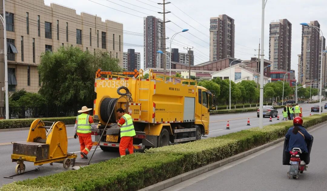 完成清淤后,工作人员继续用高压水枪对管道进行冲洗,不一会儿,清水流入雨水井。杨俊介绍,目前主要有绞车疏通、高压冲洗车疏通和人工疏通三种清淤方式,“我们已经完成陈翔路、宝翔路等81条道路约130公里的排查、疏通、清洗工作,到6月底,管养段内150公里管道疏通将全部完成。”杨俊说。