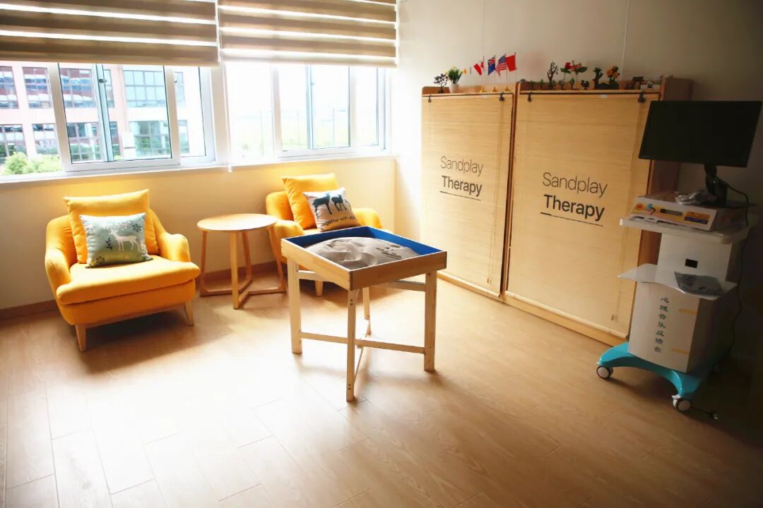 在教学楼二楼,记者还看到了两间心理教室,里面不仅配备了暖色调的沙发、心理音乐反馈台,还有各种评估和舒缓学生心理的设备。据介绍,开学后将有专职的心理教师为学生进行心理疏导,同时通过专业化的课程以及与家长互动,在家长、学生和教师三者之间搭建更好的沟通桥梁。