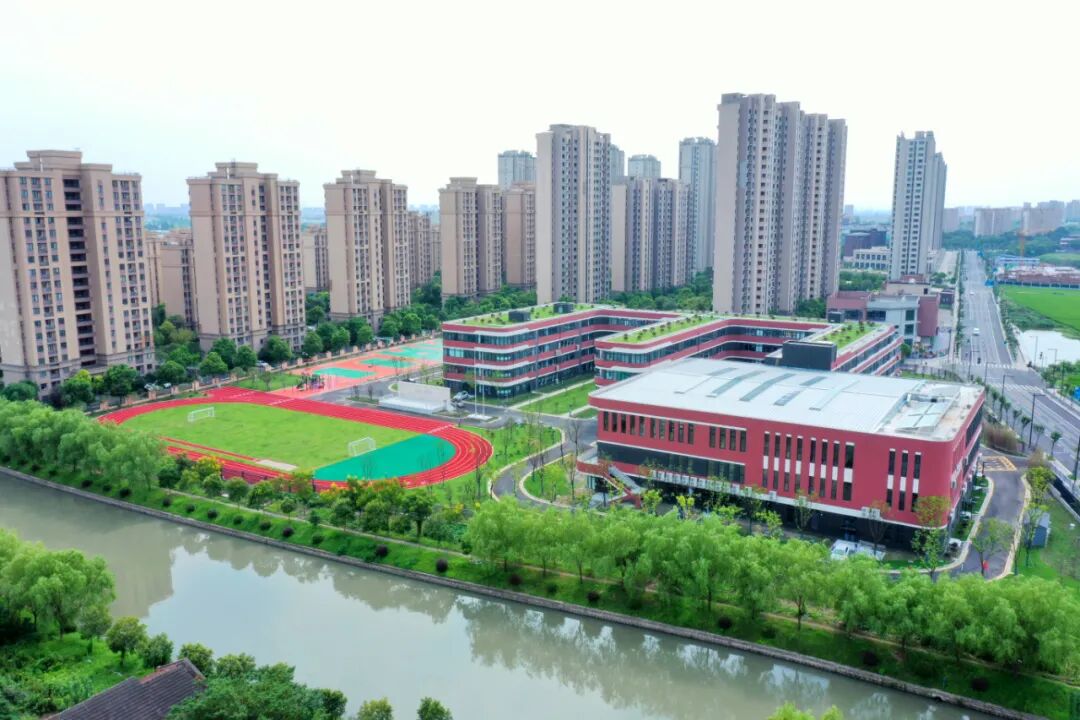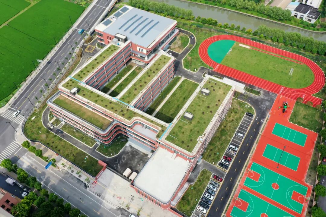 从空中俯瞰,学校全景呈现“E”字造型,砖红色的整体色调显得大气而统一,天然草坪铺设的操场以及大面积的屋顶绿化已经全部完工;从低处仰望,尚学楼、启良楼、明强楼等建筑,让人感觉到学校厚重的文化底蕴。