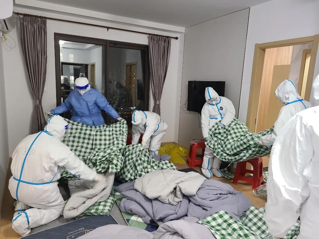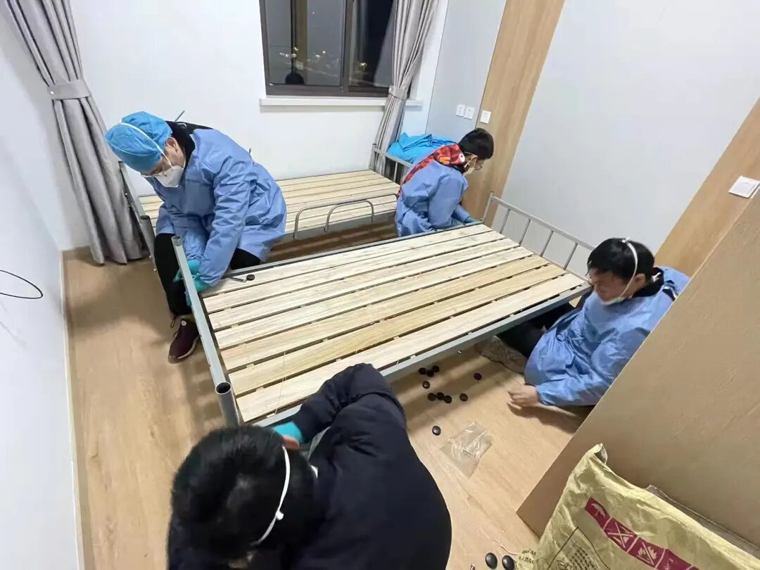 疫情就是命令,防控就是责任。新城公司一方面需要等待疾控部门确定具体隔离方案,另一方面又面临着物资采购及安装工人缺乏等棘手问题,对此新城公司党委书记、董事长王玉华,党委副书记、总经理陈烨亲临现场,带领公司班子领导立即反应、就地指挥、加快部署,于23日下午,紧急召集公司除参与常规性疫情防控志愿者工作外的全体100余名职工至现场随时待命,同时指派专人从河北廊坊,江苏南通、苏州等地采购床铺、床上六件套及生活用品,并完成物资运输协调等准备措施。