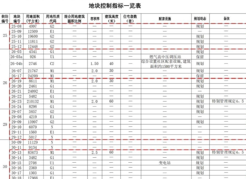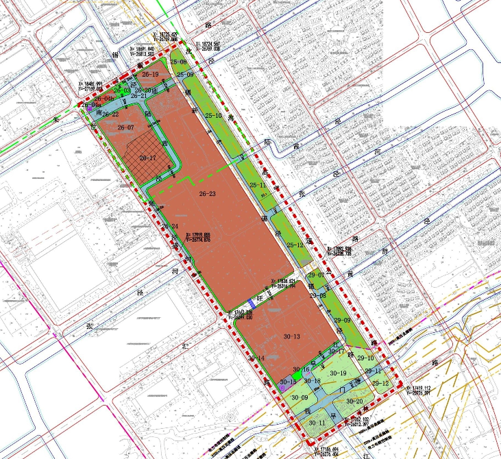 (2)整合合并26、30街坊内的工业用地,形成两幅工业用地(26-23、30-13地块),同步优化规划范围内的公共绿地用地布局。