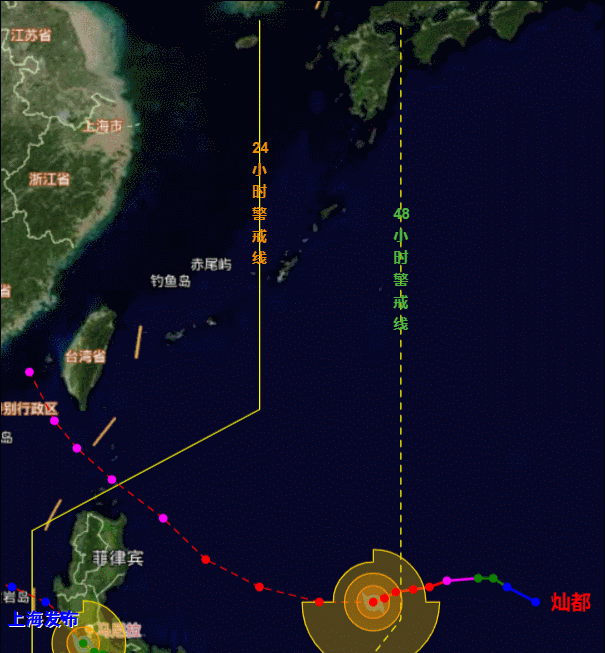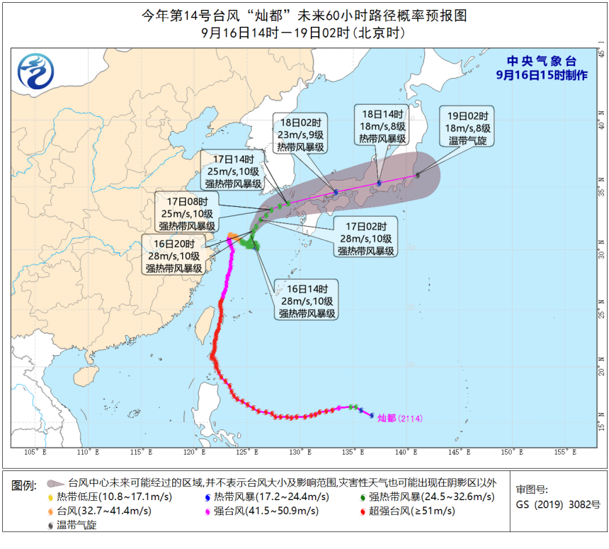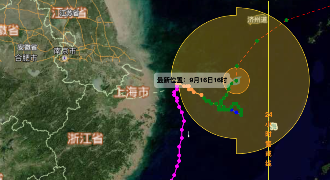 中央气象台最新发布,今年第14号台风“灿都”(强热带风暴级)的中心今天(16日)16时位于上海市偏东方向约405公里的海面上,中心附近最大风力有10级(28米/秒)。