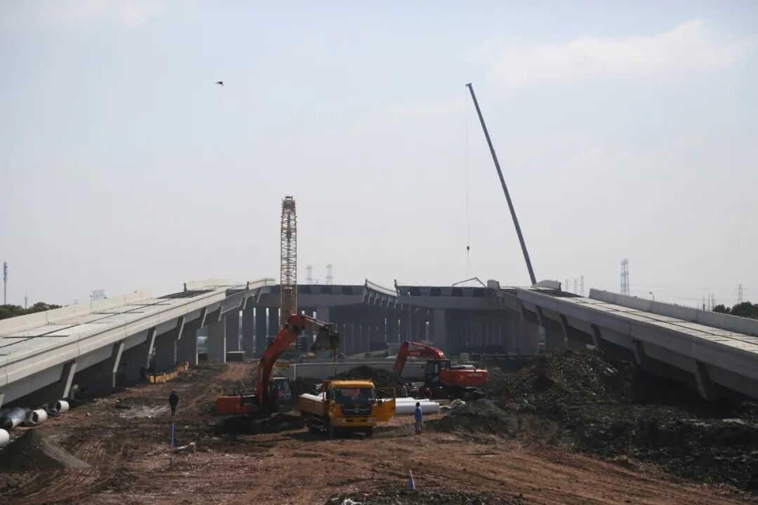在S7沪崇高速二期四标的高速路桥下匝道与地面道路宝钱公路交接处施工点位,工人正在对地面道路进行土地平整。全长6.1公里的S7沪崇高速二期项目,是嘉定规划“三横四纵”对外高速干线网络中的“一纵”,这也将是嘉定在“十四五”期间率先完成的一项重大工程项目。建成后的S7南连S20外环高速,北至徐行,将成为嘉定又一条对外重要通道。