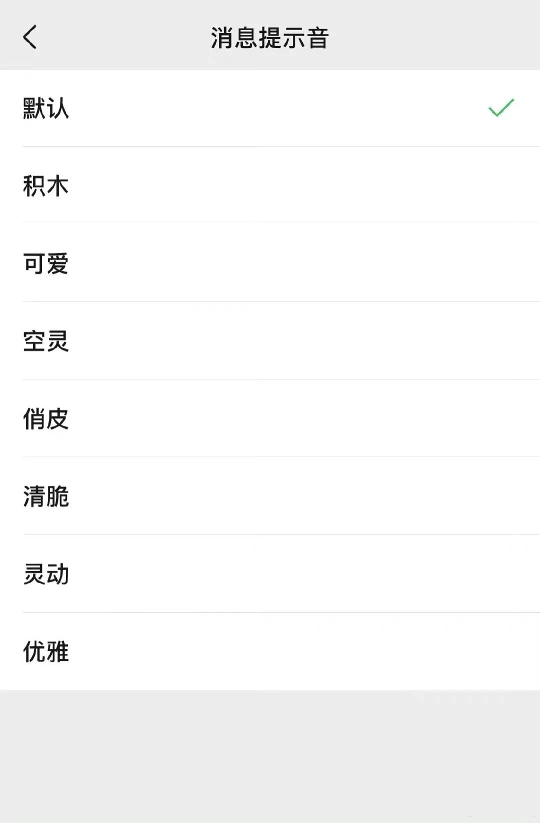 消息提示音有 8 种铃声可选,语音视频通话来电铃声则可设定歌曲或热门视频号背景音乐,支持搜索添加。