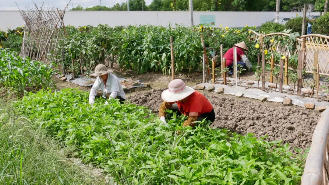 “你看,这红辣椒长得多好……”竹制的围栏、整齐而又翠绿的菜田,“农庄”内,村民戴着草帽,正有说有笑地干着农活。没有高楼的遮挡,蓝天白云似乎触手可及,就像是一幅动态的田园画,掩藏在繁华的都市中。