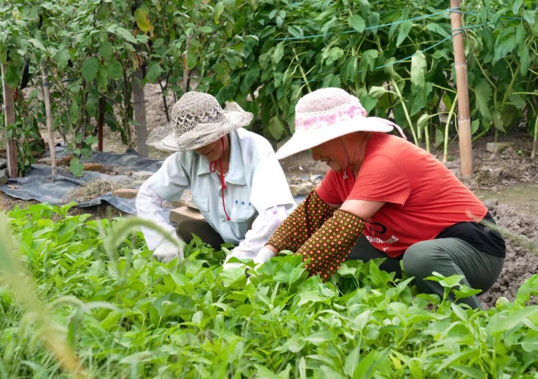 党总支成员每个月都会过来查看,去年发现有猫狗时常钻进菜地,就在四周建起了竹篱笆,蔬菜被破坏的隐患没了,整个菜园更加美观,“微型农庄”也愈发热闹,一场场主题活动在村党总支的推动下应运而生,村民之间的关系越走越近。