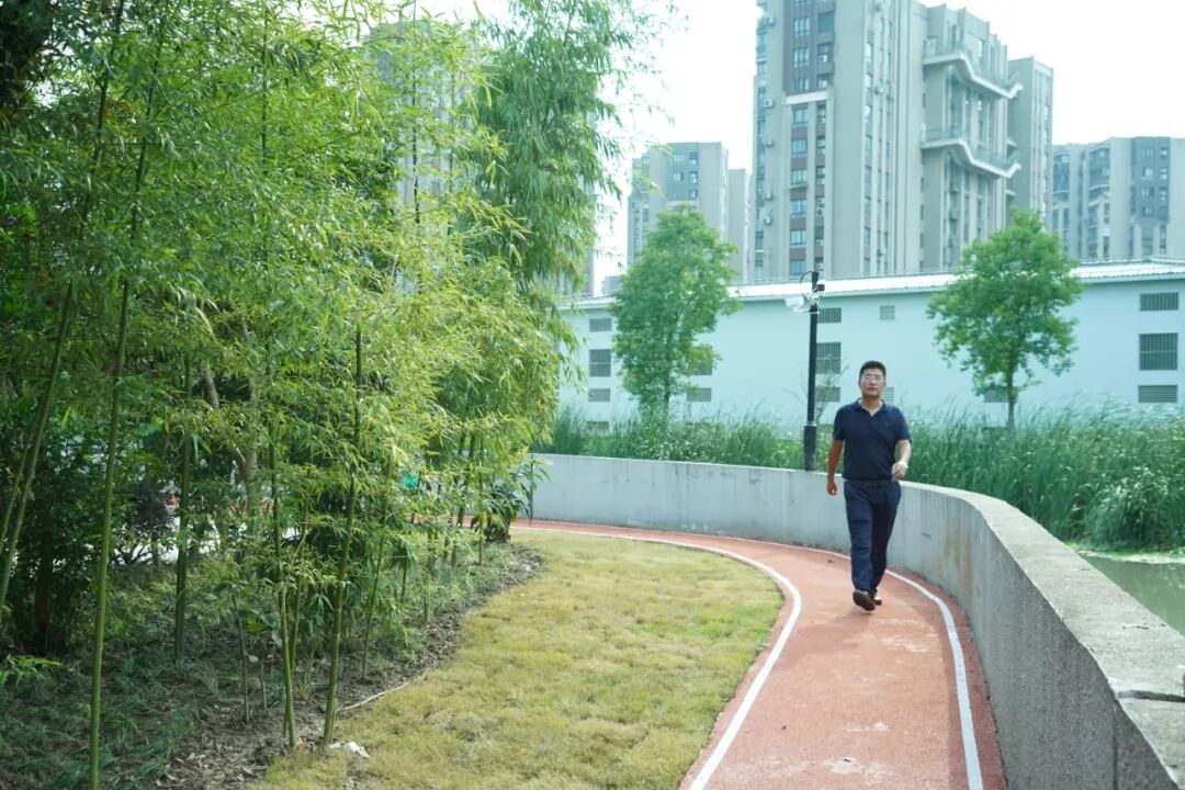 新建的健身步道,蜿蜒于娄塘河岸边。